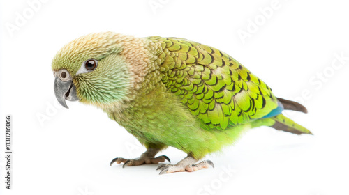 Close-up of a vibrant kakapo parrot isolated on a white background