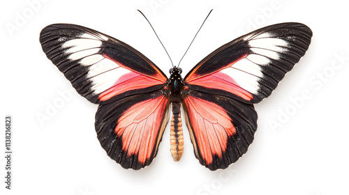Close-up view of butterfly with colorful wings on white background