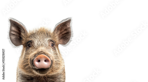 Adorable wild boar floating in the sky against a white background captures whimsical and imaginative essence