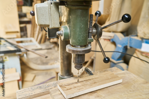 Experienced craftsman teaching young apprentice in a woodworking shop