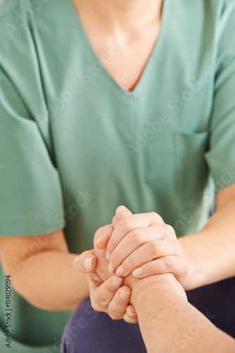 Pflegekraft mit Mundschutz spielt mit Senioren Domino