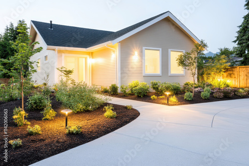 Charming 1960s modern ranch-style house with large windows and lush lawn