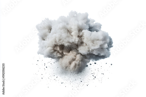 Dense smoke explosion isolated against a white background creating intriguing patterns