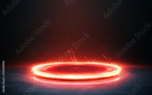 Luminous red glowing circle with radiating light and sparks effect