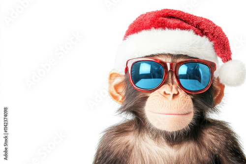 Funny monkey wearing sunglasses and a Santa hat for Christmas