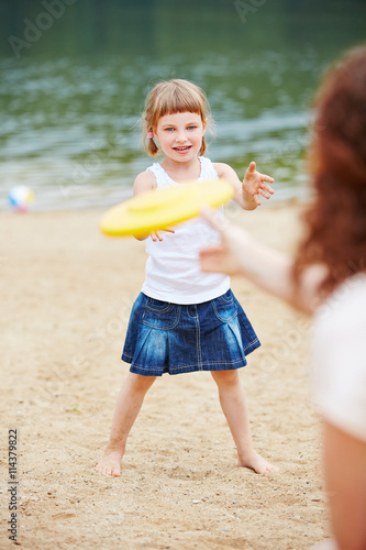 Mutter und Tochter spielen Frisbee