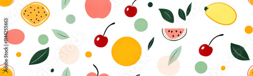 Colorful geometric fruit pattern on a white background with artistic design