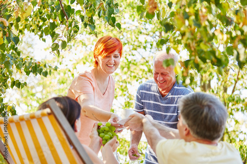 Lachende Senioren bei Geburtstagsfeier mit Kuchen