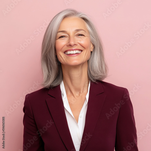 Confident Middle Eastern woman in her 50s in formal attire, exuding grace and maturity