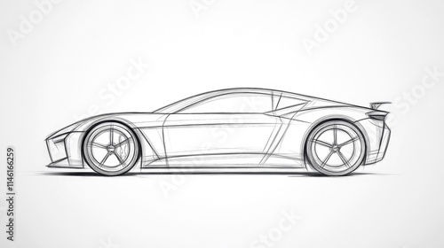 Hand-drawn pencil sketch of a sleek futuristic car side profile