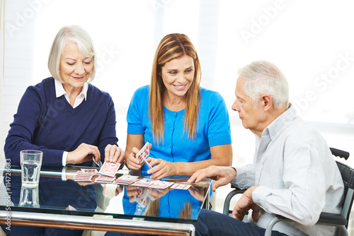 Senior people playing cards together in nursing home