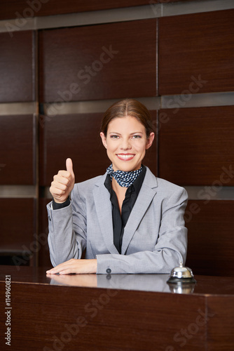 Lächelnde Empfangsdame mit Daumen hoch