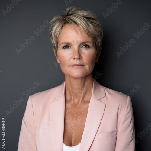 Confident middle-aged woman in pink blazer portrait