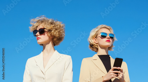 Senior women sharing laughter and joy at the beach on a bright sunny day