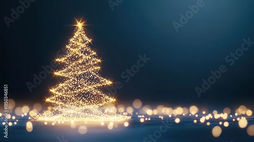 Elegant glowing Christmas tree design with festive gold sparkle and light