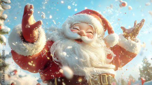 Joyful Santa Claus happily playing in a snow-covered festive environment