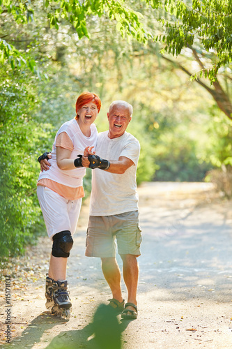 Lachende Senioren bei Geburtstagsfeier mit Kuchen