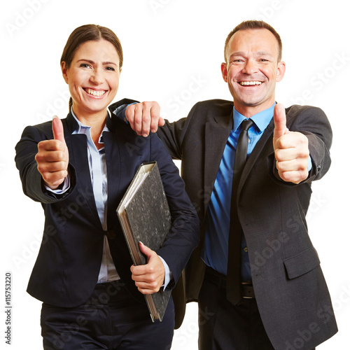Zwei Berater oder Dozenten vor Tafel mit Muskel Armen als Business Konzept