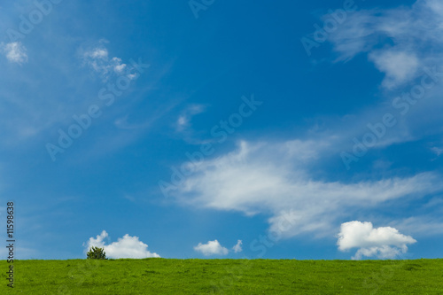 Grünes Gras auf Wiese vor einem blauen Himmel