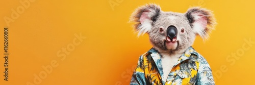 Cheerful panda family wearing sunglasses on a bright yellow background