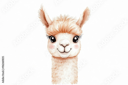 Cute happy llama cartoon in watercolor for nursery decor and children's art inspiration