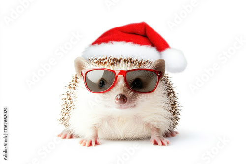 Hedgehog with Red Santa Hat and Sunglasses Celebrating Christmas