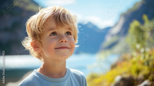 Young Norwegian boy enjoying a sunny day in natural surroundings