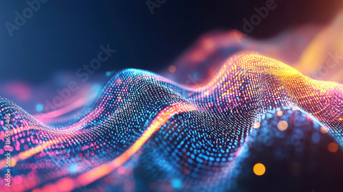 Abstract AI data stream concept with vibrant digital waves