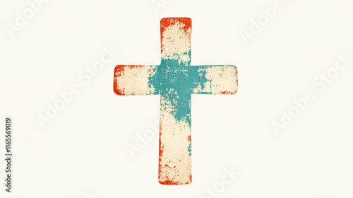 Watercolor silhouette of Jesus on the cross with a crowd below