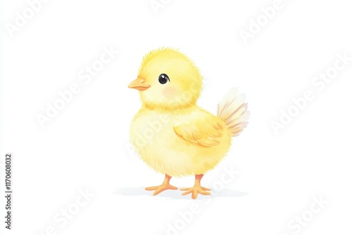 Cute and happy watercolor chicken cartoon perfect for nursery decor, featuring a fluffy yellow chick with adorable expression