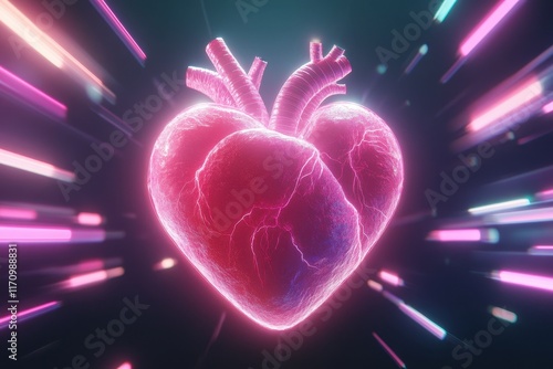 Digital holographic heart with colorful glow for Valentine's Day inspiration