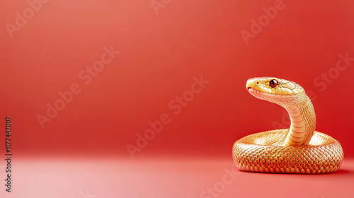 Golden snake coiled on vibrant red background, symbolizing 2025 Year of Snake