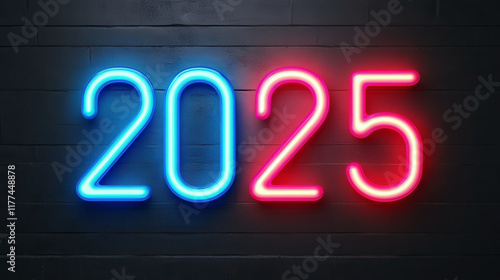 Neon glowing 2025 numbers on a vibrant dark background