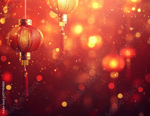 Chinese New Year lanterns illuminating warm red and golden festive background