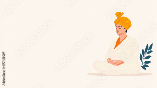 Illustration of a contemplative man meditating in a traditional outfit