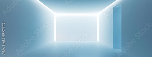 Modern minimalist room with white and cyan ambient lighting design