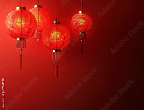 Vibrant red Chinese lanterns glowing brightly against a festive background