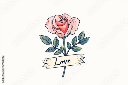 Illustrated rose art with banner text love for Valentine's Day inspiration