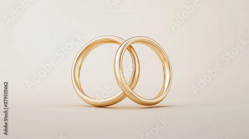 Close-up of two minimalist golden wedding rings (Generative AI)