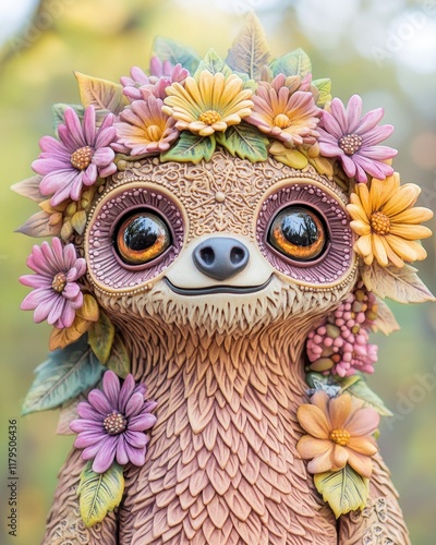 Cute fantasy creature with flower crown against a glowing background