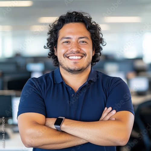 Portrait of a smiling businessman with red hair in his 30s wearing a turtleneck