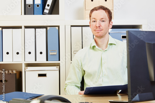 Junger Geschäftsmann arbeitet am Laptop im Büro