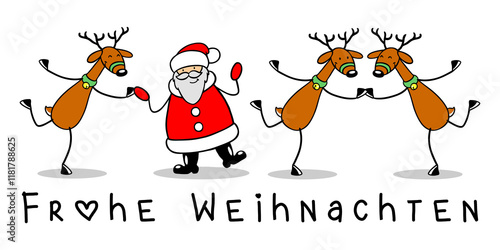 Frohe Weihnachten Motiv mit tanzenden Rentieren und Weihnachtsmann