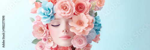 Elegant pink paper-cut flowers with leaves on a pastel background