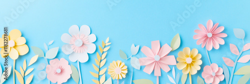 Colorful floral banner with spring flowers and abstract artistic illustration