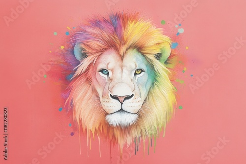 Funny cartoon lion illustration, isolated, full body, minimalist watercolor style