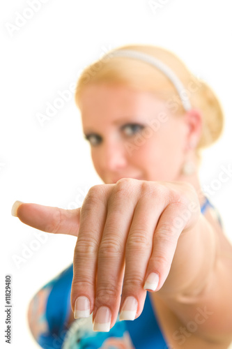 Frau flüstert leise Geheimnis mit Hand am Mund