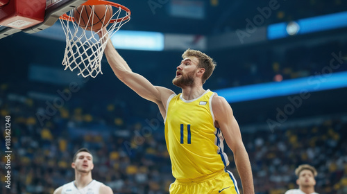 Professional basketball players in action during competitive game