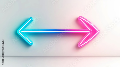 Dual glowing neon arrows pointing in opposite directions on white background