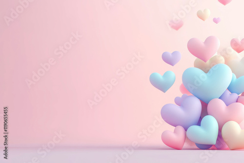 Pastel heart shapes on soft pink background for romantic design